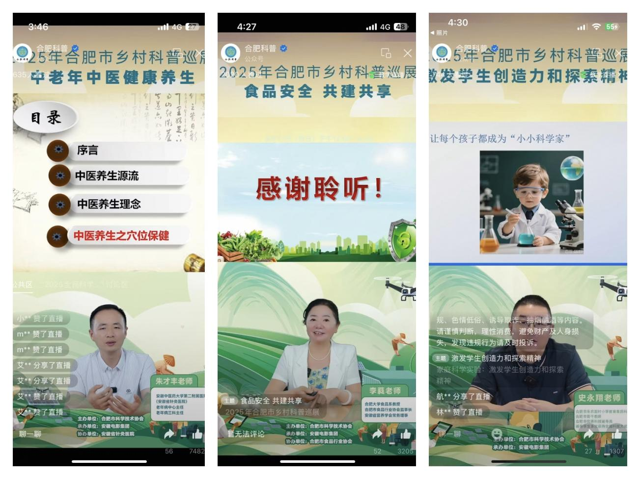 中安正在线日,合肥市村落科普巡展第二十场勾当“健康饮食取合理活动”正在长丰县水家湖公园成功举办,标记着以“光影赋能村落、科普点亮糊口”为从题的2025年合肥市村落科普巡展收官。本次系列巡展由合肥市科学手艺协会从办、安徽片子集团承办,浩繁单元协办支撑,累计开展勾当20场,笼盖合肥四县一市,间接办事群众数千人次,将科学学问的种子播撒正在村落取社区的广漠地盘上。