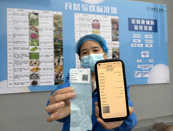 “今天芋头4吨、前腿肉2。8吨,西蓝花别忘削根!”11月7日凌晨,喇叭里传出粗粝的亳州方言,分拣员刘军把最初一筐西红柿推上流水线。扫码枪一闪,打印机里当即蹦出一张2cm×4cm的贴纸:品名、规格、分量、二维码,像给每块肉、每份菜颁布“身份证”。“若是是手写单,字潦草就容易发错货;现正在扫码枪‘滴’一声,系统间接告诉我要拣几斤几两,错不了!”刘军抹了把汗,手套上沾着泥,眼睛却亮得像灯胆。“嘀——”一声轻响,仓库办理员胡贝贝掏出手机,瞄准亳州二中订制的“前腿肉”二维码——屏幕霎时弹出:供应商、动检号、铅汞检测成果……“数据一跳出来,肉就像被X光扫过,谁还敢‘混水摸鱼’?”她说。这枚小小的标签,就像食材的“数字护照”,承载着从种植、采购、检测、分拣到配送的每一步可托消息。系统更取“票证推”平台深度对接,确保每一张二维码背后,都联系关系着的供应商天分取权势巨子检测演讲。“平安,不只要看得见,还要摸得着、查获得。”一位工做人员边扫码边笑着说,“现正在连土豆和西红柿都有‘身份证’了!”校方用餐担任人只需正在“亳州海谯汇”微信小法式上悄悄一点,订单便霎时中转系统后台。随后,系统“兵分两”:一从动生成各类食材订单二维码,精准推送给对应供应商,指点其高效备货;另一则同步至分拣核心,将需求为智能分拣秤上的清晰指令。亳州五中食堂担任人戴成成说,这种新模式大大提拔了学校的食材配送效率,并且质量可溯源,