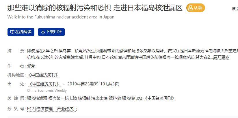 [1] 郭芳。《那些难以消弭的核辐射污染和惊骇——走进日本福岛核泄露区》[J]。 中国经济周刊, 2019(23)! 99–101。