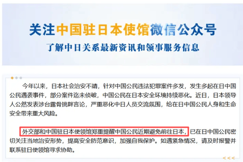 目前,中国驻日大已提示中国近期避免前去日本。此外,包罗国内三大央企航司正在内的多家航空公司发布了日本航路的特殊措置方案,对出行日期正在本年岁尾前且合适相关前提的客票采纳免费退改处置。这两项办法均带属“”类型,将选择权交给,已影响到了一部门本来筹算赴日旅逛的中国旅客的决定。一旦中日关系因高市早苗和日本的错误言论进一步恶化,接下去可能会采纳间接削减赴日航班、将日本纳入“不适宜前去地域”等办法,极端环境下不相闻问。日本旅逛消费业很难承受来自中国的“”,从业人员蒙受严沉经济丧失,要怪就得怪他们本人选出来的辅弼。