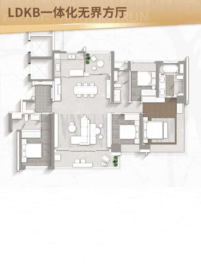 图源:楼市火线㎡户型,将改善糊口的表现得极尽描摹。从归家的第一刻起,玄关拼花以及石材布景墙便带来了满满典礼感。但实正的沉头戏是庞大的LDKB一体化厅,整个起居空间完全打通,若将次卧打通,能够构成一个超80㎡的超等家庭焦点区。